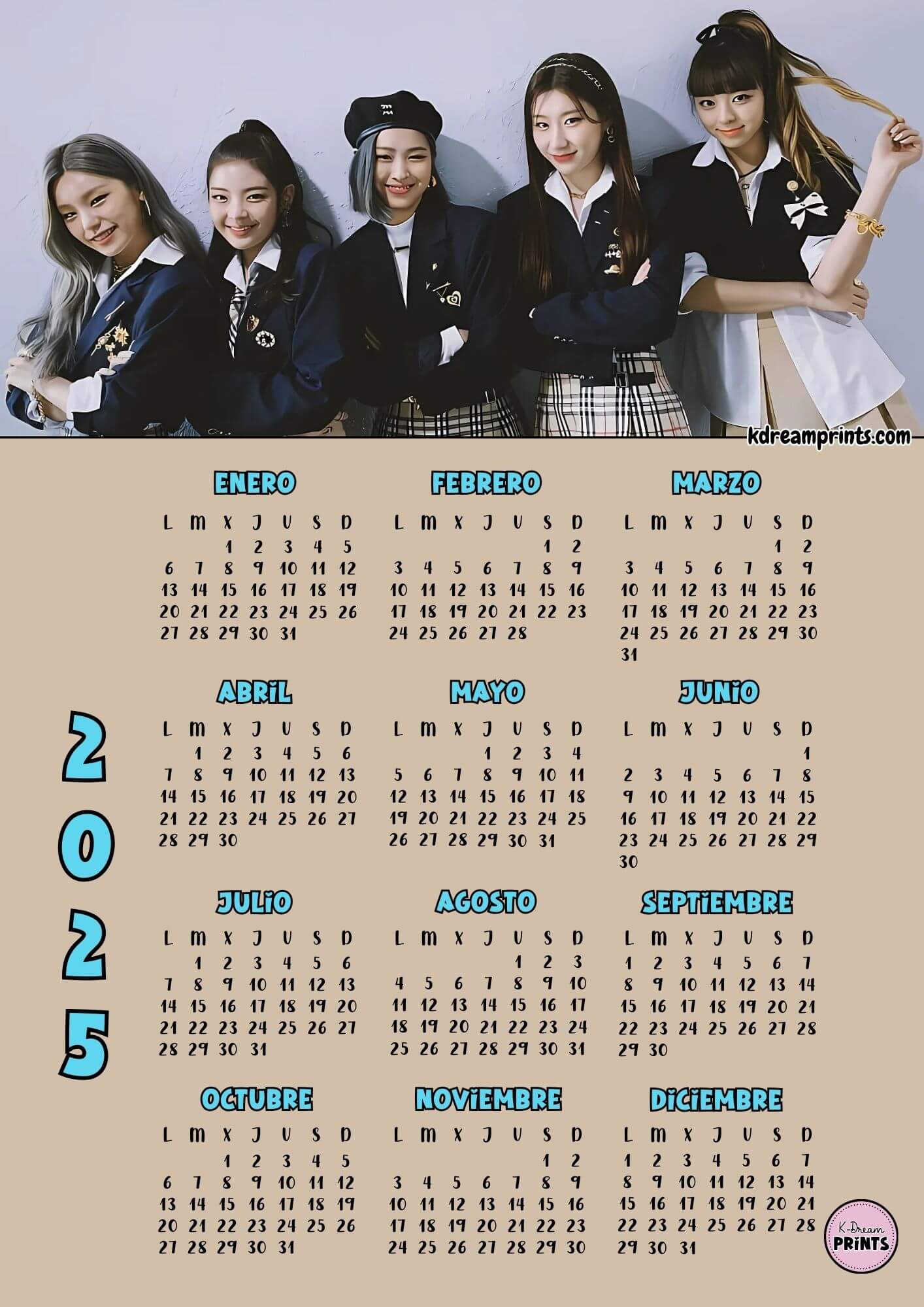 - Imprime el calendario en tamaño A4 y planifica el 2025 al ritmo de las Itzy.