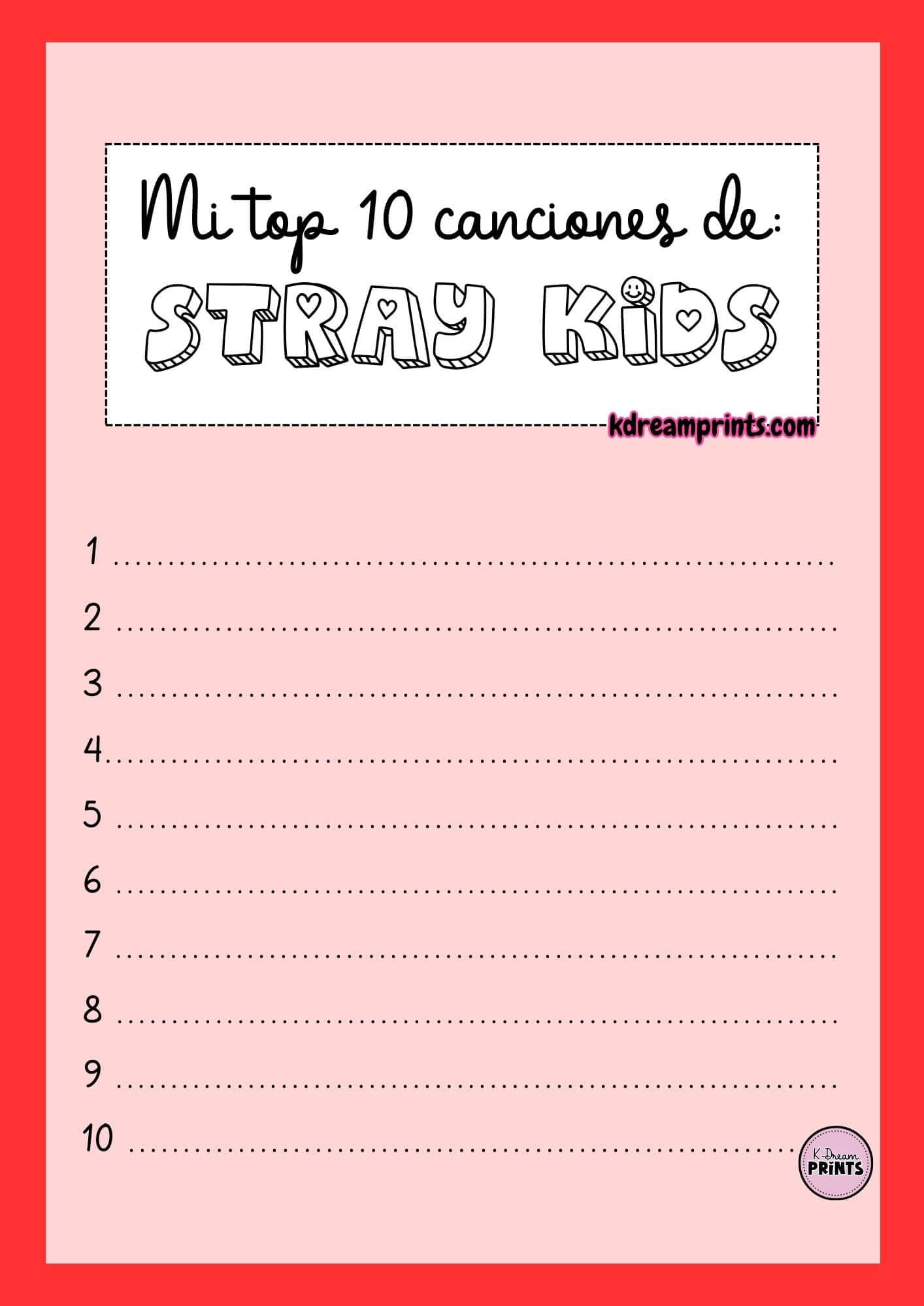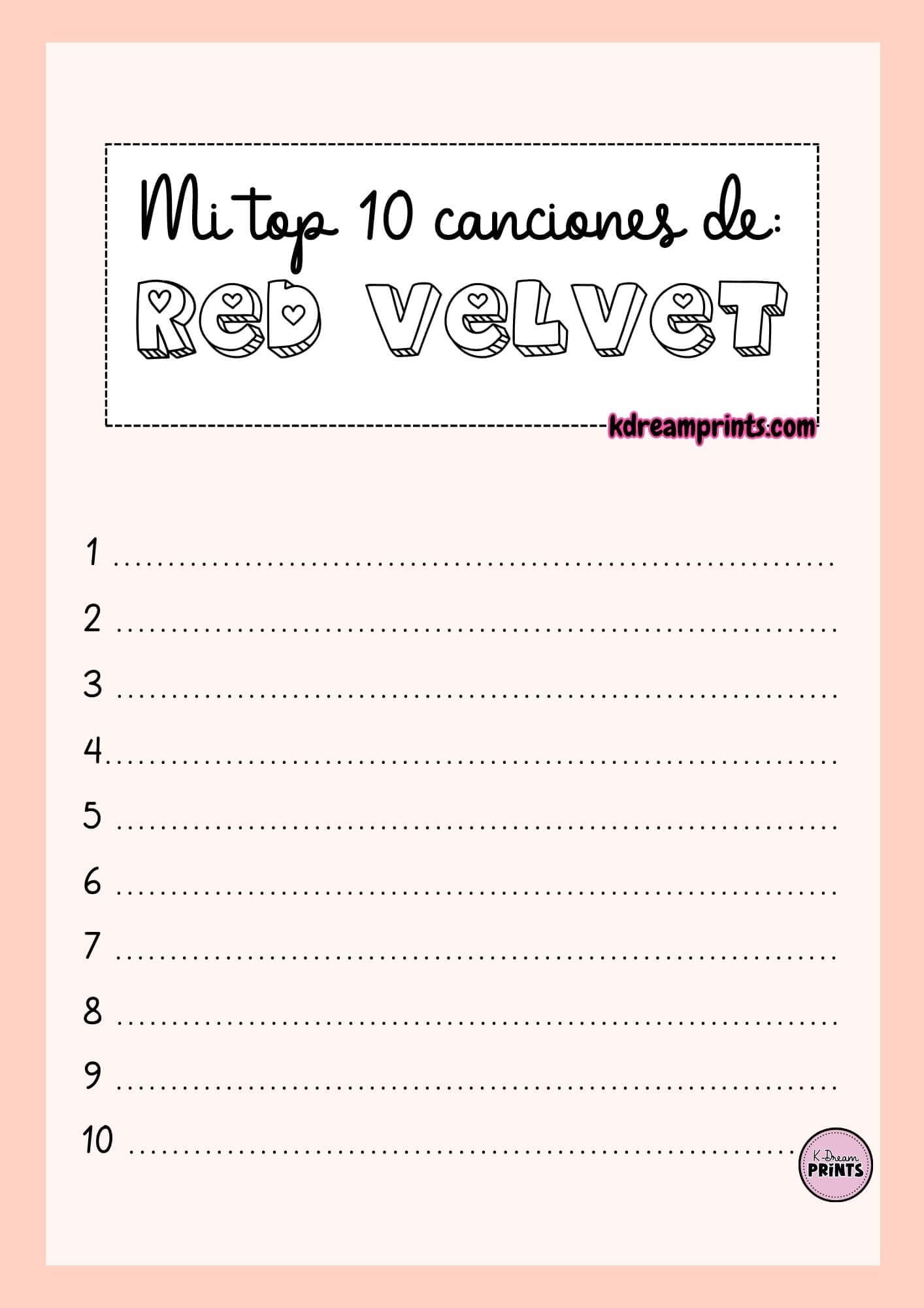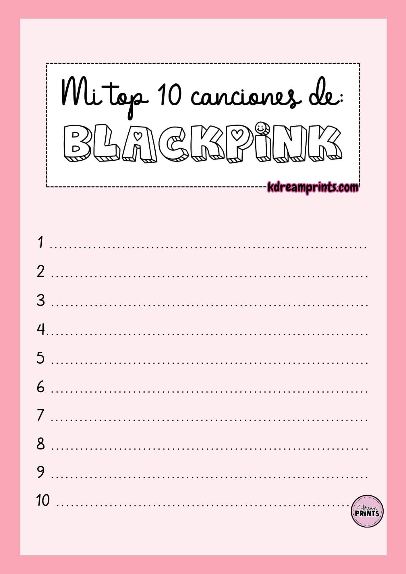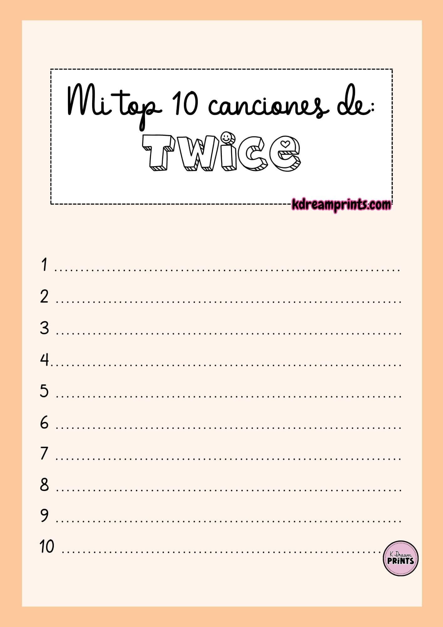 - Formato funcional y estético: Espacio suficiente para que escribas tus 10 canciones favoritas de cada grupo.